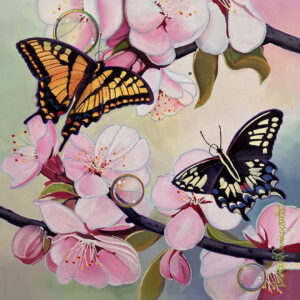 In my new series of paintings, I incorporate elements that symbolize new beginnings and the finite nature of human life. The tulips, which bloom early in spring, and the clocks symbolize the passage of time. The specific details are not as crucial as the end result – the fact that I’m still here.